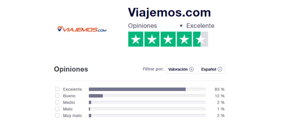 Viajemos.com. Puntuación en Trustpilot (4.7/ 5)