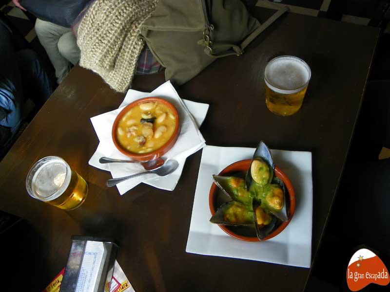 Madre que mejillones!!! eran como mi pulgar!! y la fabada de vicio, junto con una caña para acompañar, conseguimos nuestro segundo sello, aún nos faltan tres….