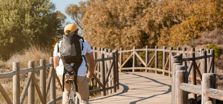 Lleva o alquila una bicicleta. Muchos campings ofrecen servicio de alquiler y rutas señalizadas.