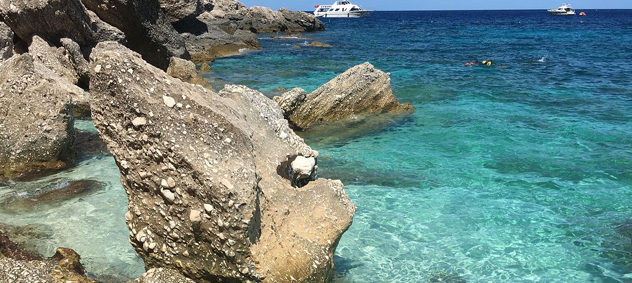 Lo que más nos gustó de esta cala, además del agua, es la posibilidad, aún en agosto, de encontrar tu rinconcito de intimidad alejado de la marabunta de la zona donde atracan las lanchas y barcos. Bueno, en agosto, agosto, no. Encontrarlo, lo encuentras, pero la gente no deja de pasar de un lado a otro buscando el mejor lugar para hacerse su selfie… ¡Sin comentarios! 😉